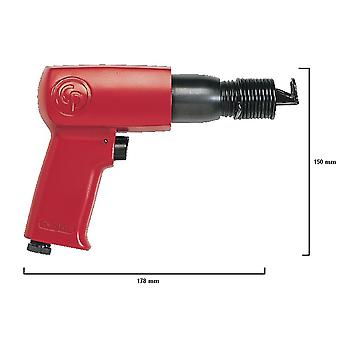 Benefits Versatile and cost effective. Fast cutting action. Designed for all general work. Features Standard .401in round shank Easy change retainer for quick accessory change Specifications Model: CP7111 Part Number: 8941071110 Actual Air Consumption: 708 l/mn / 25 cfm Air Inlet Thread Size: 1/4in Average Air Consumption: 177 l/mn / 6.25 cfm Blows Per Minute: 3000 Bore: 19mm / 3/4in Chisel Rivet Set Shank: 10.2mm / 0.401in Cold Rivet Capacity: 6.4mm / 1/4in Cold Rivet Capacity (steel): 4.8mm / 3/16in Length: 171mm / 6.7in Min. Hose Size: 10mm / 3/8in Net Weight: 1.6kg / 3.6 lbs Power (Joules): 7.2 joule Shank: Round Sound DBA Pressure: 100 db(A) Sound Power: 111 db(A) Stroke: 67mm / 2.63in Vibration: 6.3 m/s2 Vibration ISO: ISO-28927-9 Vibration Uncertainty (K): 3.1 m/s2
