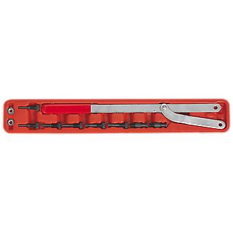 Features: Designed to remove and install fan clutch and rotate or restrain the camshaft pulley. Adjustable jaw spread and interchangeable pins. Supplied in storage case. Specifications: Model No: VS783 Jaw Spread Range: 40-220mm Pin Sizes �: 6, 8, 10, 16mm (2 of each) Height: 52 Width: 732 Length: 162