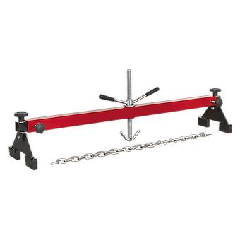 Features: Designed to support and accurately position engines during maintenance operations such as replacing anti-vibration mountings and certain body panels. Also used as an aid for the removal of gearboxes and transmissions. Beams supported on rubber feet and fine adjustment control is obtained by using a screw/hook mechanism. Supplied with a short length of chain. Specifications: Model No: ES500 Capacity: 500kg Maximum Width: 1910mm Minimum Width: 1120mm Screw Travel: 230mm Height: 85 Width: 1160 Length: 160