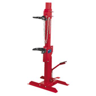 Features: 1500kg Foot operated hydraulic unit. Quicker and easier than using ratchet driven spring compressor. Plastic coated yokes reduce the risk of spring slippage or damage and are suitable for springs from �80mm to �175mm.Specifications: Model No: RE231 Specification Table: Maximum Load: 1500kg Upper Yoke Positions: 7 Lower Yoke Travel: 340mm Spring Diameter: �80-175mm Actuation: Foot Pedal Height: 170 Width: 1230 Length: 290