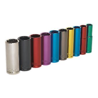 Sealey Ak285D Multi-Coloured Socket Set 10Pc 3/8In Sq Drive 6Pt Deep Metric
