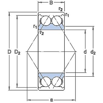 Angular contact ball bearings have inner and outer ring raceways that are displaced relative to each other in the direction of the bearing axis. This means that these bearings are designed to accommodate combined loads, i.e. simultaneously acting radial and axial loads.The axial load carrying capacity of angular contact ball bearings increases as the contact angle increases. The contact angle is defined as the angle between the line joining the points of contact of the ball and the raceways in the radial plane, along which the combined load is transmitted from one raceway to another, and a line perpendicular to the bearing axis.Double row angular contact ball bearingsSKF double row angular contact ball bearings design corresponds to two single row angular contact ball bearings arranged back-to-back.Bearing Features: Less axial space - Can be used for applications where two single row angular contact ball bearings arranged back-to-back take up too much axial space. Accommodates radial as well as axial loads in either direction. Accommodates tilting moments. Stiff bearing arrangement. Specifications Inner Diameter: 50mm Outer Diameter: 90mm Width: 30.2mm