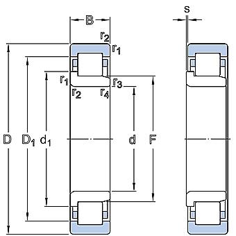 NJ design bearings have two integral flanges on the outer ring and one on the inner ring.