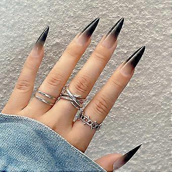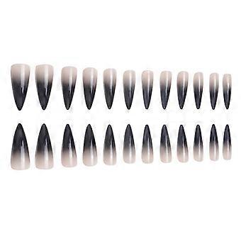 24 pieces of long pointed nails gradient European and American nail art simple wear nails Women