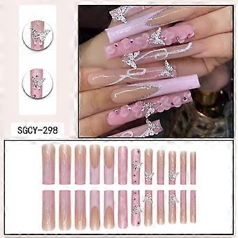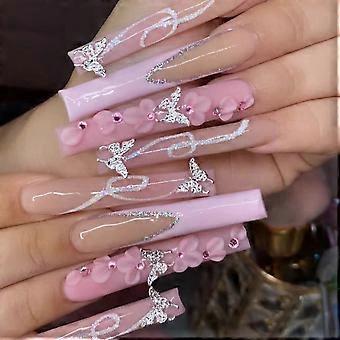 The "Glimmering Garden" nails are crafted with a delicate silver butterfly design, symbolizing transformation and growth, and adding a dynamic element to the classic glitter and diamond accents. The silver butterfly is not only a fashionable choice but also a meaningful one, making these nails perfect for those who want to make a statement with their manicure