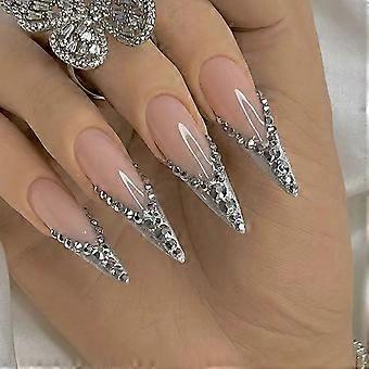 Inspired by the latest bridal nail art trends of 2024, our collection features a delicate French tip, a classic that never goes out of style . The glitter powder burst adds a touch of sparkle, reminiscent of the "Sparkle and Stars" trend where gold glitter and small stars create a whimsical medley for an occasion manicure . The diamond accents are a nod to the "Diamond Dust" style, where superfine glitter is reimagined, catching light from each nail bed and adding a unique, reverse French detail .