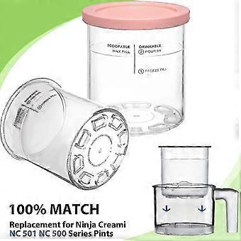 [CREAT DELUXE FROZEN TREATS]: Compatible with Ninja Creami Deluxe NC501, NC500 series Ice Cream Maker Perfectly. Simply blend your favorite frozen pints containers right in the pints and seal with the leakproof lids. Not only can ensure the optimal performance, but also best value for the fellow ice cream loving families.[LEAKPROOF LIDS]: Our lids are tight enough to keep the ice cream containers sealed, no more leaks or spills. The lid can insulation other smells from freezer that keeping your ice cream, yogurt, sorbet, or other frozen foods taste.[4 PINTS CONTAINERS AND LIDS]: Compatible with NC500 series Ninja Creami Deluxe ice cream makers. you having the extra 4 pints containers is very convience. Cause you can creat more intersting and yammy frozen treats for you family or friends.[REUSE&ECO-FRIENDLY]: Both pints and lids are BPA-free, and dishwasher safe for easy cleaning after multiple uses. They are shatterproof, Can Reuse them to whip up all kinds of intreasting frozen treats.[NOTE]: Compatible with Ninja Creami ice cream makers NC500 Series. They will not properly function with other blender models.
