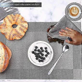 Dimensions and materials: 30 cm x 45 cm. 70% environmentally friendly PVC + 30% polyester. It has a careful weaving process, is durable and not fade-resistant, heat-resistant, wear-resistant, antibacterial and flame retardant. EASY TO CLEAN & MAINTAIN: If placemats are stained, wipe the dirt with a damp cloth or rinse it under the tap. Stains can be washed off quickly and easily. The placemat with quick-drying, antibacterial and mildew resistant properties that can make meals safer and healthier. Strong and durable: superior quality with exquisite design. Placemats are washable, non-fading, non-stain, mildew resistant, wipe clean and dry very quickly. Durable, freely bent, tensile force without deformation. Protect your tables. MULTIPURPOSE USE: Our placemats are a good choice for daily kitchen, hotel or business office. The outdoor and indoor meets your different needs. Great gift idea for all occasions, Christmas, Wedding, Father´s Day, Mother´s Day. PERFECT DECORATION: Elegant placemat with non-slip insulation is a good decoration and quality of life for your home, dining room, kitchen, hotel and business office.
