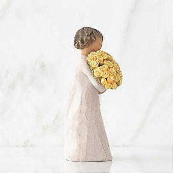 Description Wishing you sunny days of happiness 5.5h hand-painted resin standing figure in cream dress, holding large bouquet of yellow roses in her arms. A gift to celebrate...