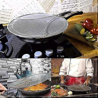 1.Avoid Hot Oil Splash:This splatter screen with comfortable heatless Non-Slip handle helps you in avoiding getting splattered and burned by sizzling oil, boiling hot sauce, or other liquids during cooking.With large oil splatter guard that stops almost 99% of splatter and mist, While letting the steam out when cooking.2.Premium Materials :This splatter screen for frying pan made of 304 stainless steel ,Heavy duty BPA free materials will not rust, discolor, or warp.Splash guard skillet lid can be used for many year with no loss of performance. Easy clean and dishwasher safe.Note: do not use product in oven.3.Multiple Uses:Our 13" splatter guards that fit almost any pan. Ideal for frying steak, bacon, chicken, fish.Grease splatter screen can also be used to drain noodles, vegetables, and fruits.Can also act as cooling rack for baked goods, a fine mesh can be used to sift flour.4.Great Design:Double-layer mesh of splatter guard stops 99% hot oil splash.Heat-resistant TPR plastic handle keeps you protected from heat while giving a firm and secure grip on the splatter guard shield. The four resting feet mean you can put the frying mesh on the counter top without getting grease everywhere. With a hanging hole,that you can hang it on any place for convenient use or dry.