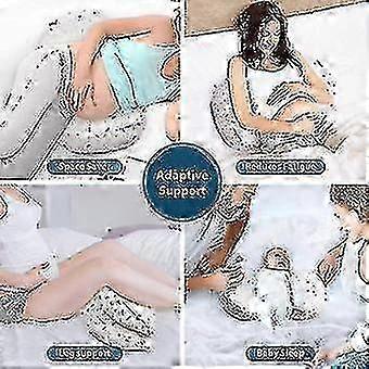 Get A Good Nights Side SleepThe growing fetus, can push against internal organs, including the lungs, and make it difficult not only to breathe, so it can be challenging for pregnant women to enjoy deep sleep. This pregnancy pillow will better suppor pregnant women´s lower back, hips and abdomen, helping you relieve sciatica, fibromyalgia, and other discomforts associated with your lower back, hips and abdomen during pregnancy. Ergonomic and VersatileThe 30-degree slope design of the maternity wedge pillow allows it to perfectly fit the curves of a pregnant woman´s body. This ensures that this sleep aid pillow provides optimal support and prevents unnecessary strain on the body during sleep or when sitting. The elevated design of the wedge pillow caters to different trimesters of pregnancy. The inner side is suitable for the1-5 months and the outer side is suitable for the later stages of pregnancy from 6-10 months. Detachable & Washable The pillowcase of the pregnancy pillow can be easily removed and washed in a washing machine, ensuring that it stays fresh and hygienic. Additionally, the pillow insert is designed with an invisible zipper. This allows users to adjust the amount of filling to their liking. By adding or removing filling, users can find the perfect level of support and comfort. This feature also ensures that the pillow does not collapse and maintains its shape and effectiveness over time. Adjustable & Non-SlipThe maternity pillow is equipped with a velcro which allows you to customize the distance between the pillows according to your comfort. This ensures that your belly, back, and hips are optimally supported throughout the night. The non-slip silicone strap on the back of the pillow prevents it from shifting or moving while you sleep. Save the Room of Your BedDesigned to save space and provide ultimate comfort, this compact pillow is perfect for those on the go or for people with limited space in their beds. Unlike bulky U-shaped pillows, this pillow allows your partner to sleep comfortably on your side while you enjoy a good night´s sleep. Additionally, our pillow eliminates the need to climb over your sleeping partner to reach the bathroom during the night. Exquisite Quality This innovative pregnancy belly pillow offers the highest level of certification with an impeccably safe and quality design. This maternity pillow is an absolute essential for any expecting mother and also a perfect gift for your beloved friends and family. Kindly reminder: Since the pillow is vacuum packaged, simply pat it gently and let it expand for at least 48 hours to achieve the ultimate fluffy goodness before diving into its cozy embrace.