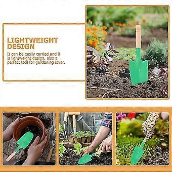The garden trowel is for easy digging into tough soil, breaking hardened clods, planting, transplanting, removing stubborn weeds, mixing soil and compost or scooping.It is a great companion to bring your garden to life and also can be a great gift for a friend who loves gardening. Features -Color:Green -Material:Iron,Wood -Size:25.50X6.80X2.00cm/10.02X2.67X0.79in - Easily fit this entrenching gardening shovel in your backpack or the trunk of your vehicle. -Suitable for home gardening or other outdoor activities, such as camping, hiking, climbing, tourism, travel, etc. -It can be easily carried and it is lightweight design, also a perfect tool for gardening lover. -The shovel is made of good materials for durable long time use without deforming, it is practical. -Our product is perfect for digging, chopping, sawing, cutting, picking, hammering, shoveling and so on. Give you a good use experience. Package list: 8 x Garden Trowels