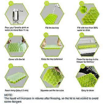 NEW SEALED LID DESIGN: New upgrade, the upgraded design of the edge of lid makes it easy to cover ice tray tightly, superior tightness of lid, prevent overflowing, stay away from odors in the freezer, go beyond ordinary ice cube trays. FOOD GRADE SAFETY MATERIAL: Made of soft silicone which are 100% food grade materials, BPA free, safe, sanitary and quality-assured. This silicone ice tray will not deform in the temperature range of -40F to 400F. VALUE PACK & PERFECT SIZE: This set includes 2 premium silicone ice cube trays with 37 cubes per tray creating a total of 74 ice cubes. Tray size: 8.66 x 5.30 x 0.98 inches. Cube size: 0.8 x 0.8 x 0.8 inches. EASY TO RELEASE AND CLEAN: Take ice trays out of freezer and wait for about 2 minutes, then ice cubes release easily with just a twist. Our ice trays can put into dishwasher, and clean off quickly and easily. ENJOY DIY FUN: The silicone ice tray provides you much more pleasant ice-making experience. Perfect for making ice cubes or filling the molds with drinks, fruit, yogurt, jelly, chocolate, customize your favorite flavor. WHAT YOU GET: You will receive 2 pcs ice cube trays with lids