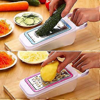 This slicer is suitable for cutting longer foods, such as cucumbers and carrots. You just need to slide it slightly. Easy to use, save timeMade of high quality PP + stainless steel, very durable. It is very durable and very practical, so you don´t have to worry about hurting your fingersEasy to clean and fast vegetable cutting tool. Easy to clean and store, only takes up a small space in the kitchenSmall and portable, not only can be used at home, but also can be carried with you during camping or picnic. It is an ideal toolThe grinder is compact and ideal for storage in a small kitchenSmall, interesting vegetable slicer, easy to operate and clean, bringing you a healthy and happy lifeThe vegetable grinder is very practical for those who like different eating habitsVegetable grinder design lets you spend less prep time and create more recipes to keep your body healthyHand graterWithout electricity, the laptop will be more environmentally friendly and cooking will be more funRemovable design, easy to clean, safe and portableProduct: GraterNew material PP + stainless steelSize: 25.5cm*10cm*9cmWeight approximately 297gQuantity: 1 grater, 4 spare blades (pink, orange, blue, green)NoteVisual difference caused by computer monitor color difference or product lighting dark and brightness is not high quality color difference
