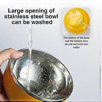 Features: 1. The heated pet bowl is very suitable for preventing water or food from getting cold in winter, so that pets can drink warm water and eat warm food. 2. Thermal pet bowl with the 15 tilt design, it can reduce the pressure on the cats neck, arthritis or back 3. Can be heated to 25-45, the heating bowl can maintain a constant temperature, so there is no need to worry about the water freezing. 4. The heating bowl will automatically power off when it reaches 45 degrees, and the green mode of interval heating 5. Suitable for small dogs and cats, rabbits and other animals. Specification: Material: Food Grade Stainless Steel + Food Grade PP Product Color: Yellow Product Size: Diameter: 14cm, Height: Low: 7cm, High: 11cm Product Weight: 150g Capacity: 450ml Package Included: 1 x Heated Pet Bowl