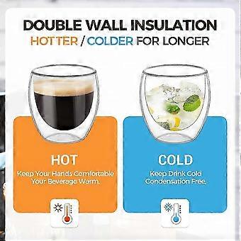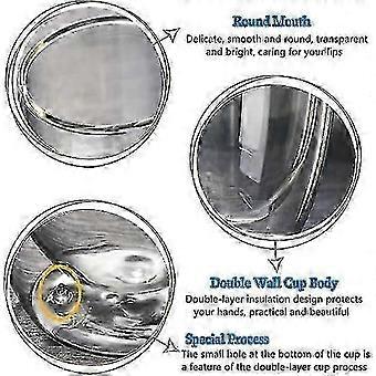 High quality material: Made of high quality borosilicate glass, which is a special glass material with high temperature resistance, high strength, high hardness, high light transmittance and high chemical stability, the cup will not break not even at high temperature. All glassware is fragile, so handle and wash it with care.Unique appearance: simple and smooth lines, crystal clear glass, very beautiful when placed on the dining table. The double-insulated walls and transparent body create the illusion of floating, making your drinks more attractive. Perfect for coffee, latte, espresso, cappuccino, tea and hot or cold drinks.Double Wall Design: Features an insulated double wall design to keep your drinks hot for longer. This design allows the cup to hold hot drinks safely and prevent condensation when storing cold drinks. Your drink will stay hot or cold longer than a double-walled glass under the same conditions.