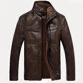 Men Jacket Vintage Long Sleeve Stand Collar Faux Leather Fleece Lined Zip Warm Windproof Short Jacke Women