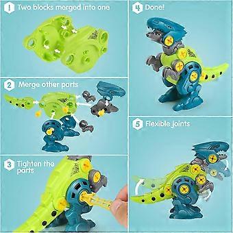 [What You Will Get] Dinosaur toys including Tyrannosaurus Rex, Centrosaurus, Triceratops, Velociraptor, screwdriver, electric drill and storage box. Take your kids on a journey of dinosaur discovery.^[Build; Disassemble] With this construction toy, kids can build dinosaurs and take them apart. Even more interesting is that the dinosaurs´ head, mouth, legs and tails can be moved. Keep your kids focused and have hours of fun.^[We Care About Safety] Our dinosaurs are made of high-quality plastic and have passed safety tests. The electric drill toy will automatically stop when it encounters obstacles, thus effectively preventing possible harm to children.^[Educational Set] Dinosaurs can be freely assembled, which will improve hand-eye coordination, manipulative ability, train logical thinking and problem-solving ability. And you won´t worry about your kids getting addicted to electronic products.^[Gifts Kids Will Love] This is a toy that dinosaur lovers can´t resist. Ideal gifts for boys and girls on birthdays, Easter, Halloween, Thanksgiving, Christmas, etc. Suitable for children ages 3 and up. Note: In order to reduce the difficulty of assembly, please assemble each dinosaur separately according to the accessories individually packaged by the merchant. Do not mix all the accessories together to avoid assembly errors.