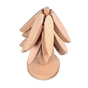 Wooden Trivet Set 3 Pcs Tree Shaped Heat Resistant Beech Wood for Hot Dishes Women
