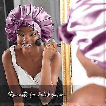 SQCLV Satin Bonnet Silk Bonnet for Sleeping Double Layer Satin Lined Hair Bonnet with Tie Band Bonnets for Women Natural Curly Hair Women