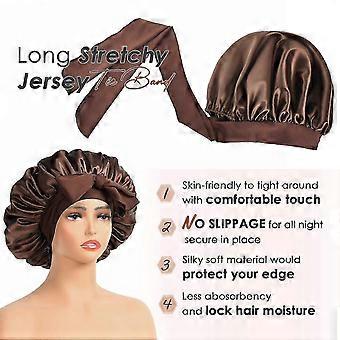 Bonnet always disappear while opening your eyes? Here come a non-slip Bonnet to solve this headache problem, this satin Bonnets featured with stretchy long band, wide soft, high elastic and skin friendly, you can wrap on head, adjust tightness and then tie to fix Bonnet on head, which can stay on over night, prevent hair from messy, well protect your hair.It is not only just a Bonnet, but make you different as ever by wrap in different style, with wide soft skin friendly stretchy band of size of 2.8 wide and 58 natural length, can be stretched to at least 75, you can make a bow on forehead or both side, or make a knot and then wrap, or directly wrap on back if you are man.Grip and protect wigs and edges:2.7inch Wide Band grip wigs well,perfectly protect your hair while sleeping as night cap, Also keep your edge neat well.Quality material: Bonnet part is made of good texture pink silky satin, which is breathable and smoothy, and can keep hair moisture too. Long band is made of stretchy spandex material, comparing common elastic band Bonnet, this Bonnet wouldnot make you feel tight and leave imprint on head, and much more cosy.Stylish and wide use:you can use soft wide Band on the Hair Satin Bonnet to make a beautiful bow on forehead or side, make you unique; useable many occasions, Sleeping, housework,makeup,gym,running, yoga,etc.