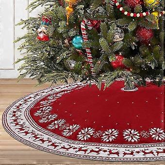 Christmas Tree Skirt, 36 Inch Christmas Tree Mat with Snowflake Reindeer Red Knitted Xmas Tree Skirts for Home Party Holiday Women