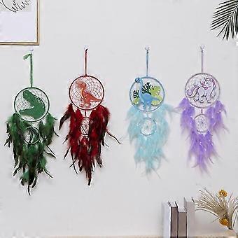 Unique Dinosaur Design: This dream catcher features a creative dinosaur shape, adding a unique and playful touch to any room.Exquisite Workmanship: The dream catcher is meticulously handcrafted with fine weaving technology and special treatment of feathers for a bright and plump color.Blessing and Peace: The dream catcher symbolizes blessings, peace, and auspiciousness, bringing sweet dreams and driving away nightmares for a cheerful and sweet atmosphere.Eco-Friendly Materials: Made of faux feathers, beads, and iron rings, the dream catcher is environmentally friendly, comfortable, and durable.Perfect Gift: Ideal for children, family, and friends, this dream catcher makes for a thoughtful and meaningful gift to send blessings and add a touch of joy to any space. Introducing our adorable Dinosaur dream catcher ornament This unique and charming dream catcher is not only a beautiful decoration for any room, but also carries the meaningful symbolism of blessing, peace, and auspiciousness. Crafted with exquisite handiwork, the dream catcher features a creative dinosaur shape that will surely bring great surprise and joy to children. Made of faux feathers, beads, and iron rings, this ornament is environmentally friendly, comfortable, and durable. The weaving technology is exquisite, and the feathers are treated with special technology to ensure vibrant colors. Whether it´s for a living room, bedroom, dormitory, children´s room, nursery, or any other space, this dream catcher will add a cheerful and sweet atmosphere to the surroundings. It also makes for a thoughtful gift for children, family, and friends, sending them blessings and good wishes. Add a touch of whimsy and positivity to your home with our delightful Dinosaur dream catcher ornament Item Name: Dream Catcher Material: Iron Hoop, Faux Leather Rope, Beads, Feathers Power Supply: 2 X Button Batteries (Included)Features: Dinosaur Decor, Faux Feather, Fine Workmanship Size Details: Round Diameter: 18cm/7.09" (Approx.)Total Length: 70cm/27.58" (Approx.) Notes: Due to the light and screen setting difference, the item´s color may be slightly different from the pictures.Please allow slight dimension difference due to different manual measurement. Package Includes: Without Light:1 x Dinosaur Dream Catcherorwith Light:1 x Dinosaur Dream Catcher