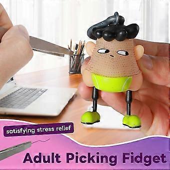 Funny Hair Picking- When you run your finger over this guy´s face, you find that the black speckling is raised, and you can´t resist pulling them out using the tweezers Pulling out these little hairs is quite addicting and gross. You will be engrossed in pulling this little odd-looking guy´s beard stubble out one by one until a new smooth-face toy comes up.Superior & High Quality- These cute novel creatures are built with the high quality standards you should expect and are designed to withstand a ton of fidgeting, popping, stretching, pulling or bending thanks to its durable material. Recommended for children 14 years and up.Perfect for Stress Relief- Thanks to their unique design and satisfying hair pulling, they have a soothing effect capturing your attention and helping you calm down and regain focus in even the most stressful situations.Multifunctional Use- Once you pull all the hairs out, wiggle the legs, and squeeze the body, it is excellent for fidgeting around. You end up with a happy but odd-looking little key chain toy to serve as a portable decor; take these little guys everywhere with you, to the office, to school or on a quick drive to the store.Fantastic Gag Gift Idea- Spread the joy and share these funny toy with your loved ones; Make someone´s day with these stress relief good luck charms These little guys make top party Valentines or white elephant presents, secret Santa & hottest basket stuffings.