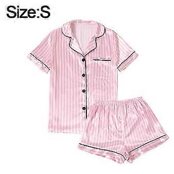 Weight: 250gMaterial: polyesterColor: pinkPackage content: 1 set of pajamasOccasion: Family1. Soft and lightweight satin material, this pajama set is comfortable for your day or night relaxation.2. Two-piece satin pajama set features a button front short sleeve shirt and a pair of shorts.3. Notch collar short-sleeved top with chest pocket, button closure and piping trim. v-neck printed pajamas with stripes. Printed elastic waist shorts with a loose fit. Women´s casual summer pajama set with shorts.4. Casual 2-piece satin pajamas set, suitable as loungewear, pajamas, casual wear, pajamas for slumber parties. Good gift for wife, mother, daughter for Christmas, New Year, birthday, etc.