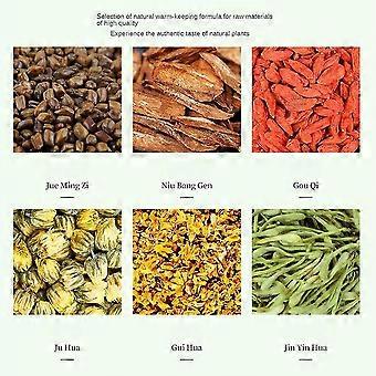 Product name: Chrysanthemum Cassia Seed TeaSpecification: 160g (8g x 20 bags)Shelf life: 18 monthsStorage method: Sealed and stored in a cool and dry placeIngredients: cassia seed, burdock root, goji berry, chrysanthemum, osmanthus, honeysuckleSpecifications:1. Flower ingredients, fresh ingredients, carefully selected from various sources2. Aroma, tea fragrance refreshing, and a subtle scent that is intoxicating3. Taste, refreshing taste, refreshing and refreshing, with sweet floral fragrance filling the lips4. Independent triangular tea bag, safe and biodegradable tea bag, extracted from corn to solve food safety issues5. Select a variety of plants, collaborate with each other, select high-quality raw materials from the original production, use natural warming formula, and experience the true taste of natural plants6. Visible fresh ingredients, scientific and healthy combination, triangular plant tea bag, busy life, never forget to reward oneself, and enjoy a happy floral tea life anytime and anywherePackage Included:20*health tea