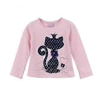 Kid Girls Print Rhinestone Cat Bow Shirt