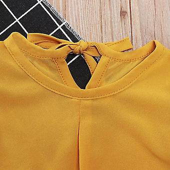 Presenting our Fashion Girls Ruffled Bow Tops+Skirt Outfit, designed to charm and captivate your little ones effortlessly. Key Features: 100% Exquisite, crafted with utmost care and attention to detail, ensuring a product. Made from a blend of cotton and polyester, giving a soft and comfortable feel on the body. The O-neck collar and relaxed design provide maximum comfort, allowing your child to move freely. Perfect for all summer events and occasions, and easy to take off and wear, making dressing up hassle-free. Please refer to our size chart to ensure the perfect fit for your little one. Specifically designed for girls. The timeless solid pattern adds a touch of elegance to this adorable outfit. Each set includes 1 outfit. Give your child a fashion-forward look with our Fashion Girls Ruffled Bow Tops+Skirt Outfit.