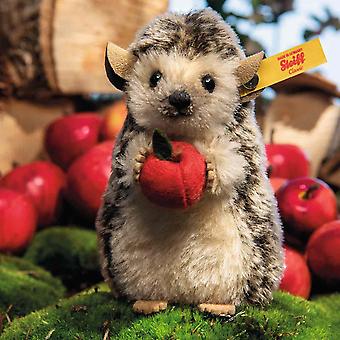 Ivo hedgehog is made of top-quality mohair in brown and beige and will be a great friend The colour graduation on his back goes from pale to almost black and is made to look like real hedgehog spikes. His heart-shaped face with a pointed, hand-stitched nose and shiny eyes is shaded with an airbrush. Just like the apple, his little folded ears, hands and feet are made of felt, while a stainless steel “Button in Ear” adorns the left ear. Safety eyes 11cm tall Surface washable Made from soft mohair Stuffed with polyester