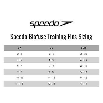 Add speed and power to your workout with our Training Fin. Wear our comfy Training Fins when you need easy speed during technique drills or want to work harder in the pool. The extra propulsion helps develop ankle mobility whilst the added water resistance challenges the lower body, improving strength and endurance. 100% silicone. Key Features Speedo Biofuse technology for maximum comfort and fit 100% Silicone for excellent comfort Strengthen leg muscles - added resistance increases the workload on your leg muscles which improves strength and endurance Develop ankle mobility - The increased surface created by the Training Fins forces ankle extension during kicking, which makes the kick more propulsive and efficient.