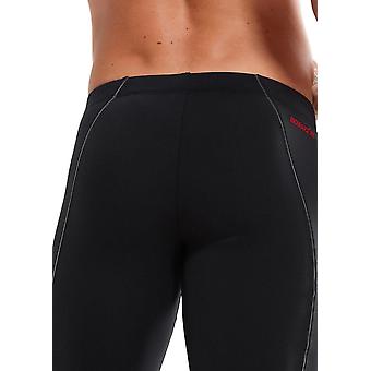 CHECK THE PROVIDED SIZE CHART (in image section above). Sizing is specific to this item and will not correspond with your usual clothing sizeClassic sports styling, straight from the Speedo archives. Performance swimwear. This sleek, tech-inspired ECO Endurance+ Pro Jammer is packed with technical innovations that help take your training to the next level. Striking in black with a graduated plastisol print design, the jammer includes a silicone gripper waistband and a flat drawstring that sits within a dedicated waistband channel for a customized fit. The V-cut design with rubberized liner ensures you feel supported and comfortable, while anti-microbial technology keeps the jammer fresh swim after swim. Designed to be durable and better for the environment, it’s made from Speedo´s new ECO Endurance+ Pro fabric, which is 100% chlorine resistant, quick-drying, made from 50% recycled materials. These Speedo jammers are finished with a water-repellent and anti-microbial treatment. Key Features: Performance Waistband – silicone gripper elasticated waistband, designed for a comfortable, secure fit Flat Drawstring - sits within dedicated waistband channel for additional security and customized fit V-Cut Design – supportive cut with Integral V-Cut Power Mesh Liner – for enhanced comfort & support C0 Water repellent treatment – environmentally friendly PFOA-free treatment encourages water to roll off the surface, and gives a drier feel after your swim Anti-microbial treatment with Sanitized® Freshness – inhibits bacterial growth, providing long-lasting freshness 100% Chlorine resistance – for long-lasting performance 50% Recycled Content – one of the yarns is made from 100% post-consumer waste, such as recycled plastic bottles