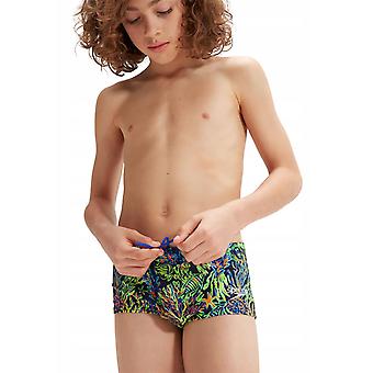 CHECK THE PROVIDED SIZE CHART (in image section above). Sizing is specific to this item and will not correspond with your usual clothing size. Set a blistering pace wearing this colourful 13 cm Allover Club Digital Brief, featuring an other-worldly, deep sea-inspired print. This longer length brief includes a wide elastic waistband to ensure junior swimmers feel comfy during training, while a drawstring waist means they can adjust the fit. The design includes a front modesty liner for added comfort and modesty. Made from the durable Speedo ECO Endurance+ fabric, it´s quick-drying and 100% chlorine resistant. Plus, one of the yarns in this fabric is made from 100% post-consumer waste, such as recycled plastic bottles. Features: Premium digital print in bright designs. Front panel liner for comfort and modesty. Wide elastic waistband for comfort. Drawstring waist provides an adjustable and more secure fit. 100% Chlorine resistance for long-lasting performance, & colours that stay brighter for longer. One of the yarns is made from 100% post-consumer waste, such as recycled plastic bottles. Quick drying. 53% Recycled Polyester, 47% PBT ]]>