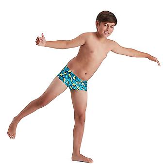 CHECK THE PROVIDED SIZE CHART (in image section above). Sizing is specific to this item and will not correspond with your usual clothing size. Look cool, swim fast. Colourful and bright with a fun smiley face print, this 13cm Brief offers juniorswimmers a longer length brief, and includes a comfy, wide elastic waistband. The drawstring waistmeans they can adjust the fit while a front liner provides comfort and modesty. Designed to be durable and better for the environment, our 13cm Brief is made from our new ECO Endurance+ fabric which is 100% chlorine resistant, quick-drying and made using 50% recycled materials. Key Features Premium digital print in bright designs Front liner - For comfort and modesty Wide elastic waistband - For comfort Drawstring waist - Provides an adjustable and more secure fit 100% Chlorine resistance - For long lasting performance, & colours that stay brighter for longer Quick dry - Dries faster after swimming 50% recycled - One of the yarns is made from 100% post-consumer waste, such as recycled plastic bottles ]]>