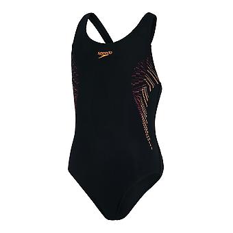 Feel confident and streamlined wearing our the girl´s sporty Muscleback with an eye-catching Plastisol panel print. A favourite amongst young swimmers, the Speedo Muscleback features comfortable straps that free up the shoulder blades to allow a full range of motion in lessons and longer training sessions. The Speedo girl´s Plastisol Placement swimsuit is made from the soft Endurance10 fabric from Speedo. It provides higher chlorine resistance than standard swimwear fabrics and fits like new for longer with CREORA® HighClo„¢. Features: Muscleback great for longer swim sessions with the design allowing full range of motion Higher chlorine resistance than standard swimwear fabrics Great shape retention properties so swimsuit fits like new for longer A medium-cut leg offers just the right amount of coverage 80% polyamide, 20% elastane (Creora HighClo)