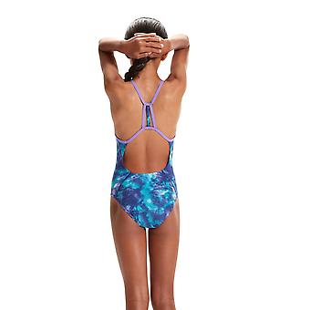 CHECK THE PROVIDED SIZE CHART (in image section above). Sizing is specific to this item and will not correspond with your usual clothing size. Take your training out of this world wearing our Shimmers in the Night Lane Line Back swimsuit, featuring an abstract underwater galaxy-style digital print in stunning shades of blue, lilac and green. The Lane Line Back includes an elegant back strap design which allows a secure fit and total flexibility of movement whilst offering modest coverage thats ideal for young swimmers. The suit is fully front lined in Miami lilac for comfort and modesty. Key features: Quick Drying Premium digital print in bright designs Modest coverage - Ideal for junior swimmers for training sessions Fully front lined in miami lilac - For comfort and modesty 100% Chlorine resistance Long lasting performance, and colours that stay brighter for longer Made from 100% post-consumer waste, such as recycled plastic bottles ]]>