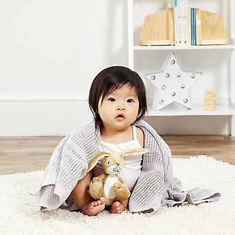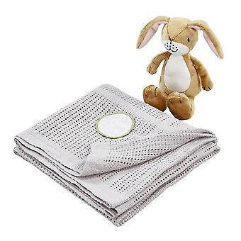 A Part of the Guess How Much I love You liscenced range from Rainbow Designs is this lovely gift set with baby blanket & soft toy. The Little Nutbrown hare soft toy is made from super soft plush and he comes with a snuggly, soft 100% cotton 90 x 70cm baby blanket which is machine washable. Both gifts in the set are safe for all ages from birth and are presented in an illustrated window gift box, featuring a ribbong handle. This will make a lovely gift for any occasion. *Please always read the safety and care instructions thoroughly.