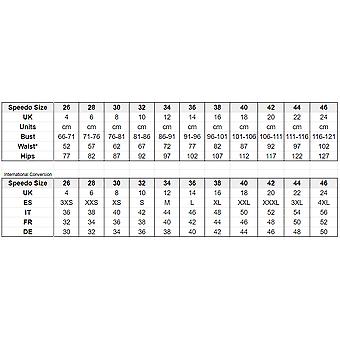 CHECK THE PROVIDED SIZE CHART (in image section above). Sizing is specific to this item and will not correspond with your usual clothing size. Enhances, flatters and feels good all over. Speedos figure-flattering Entwine swimsuit includes a stylish side panel print which visually contours and shapes your body. Its modern, sporty style includes cross-back straps to aid freedom of movement during your swim. Offering medium bust support, the hidden bust shelf liner and adjustable straps ensure a great fit during your workout. Speedos soft new ECO SHAPE COMPREX fabric teams the best in shapewear innovation with the latest swimwear technology. Perfect for your regular workout, it includes LYCRA ® XTRA LIFE, which is ultra-chlorine resistant and lasts twice as long as standard swimwear fabrics. ECO SHAPE COMPREX is made in part from recycled waste. The nylon yarn in the fabric is made from 100% pre-consumer waste, such as waste from factories. Key Features: Leg Height: High Sporty style with cross back straps to aid freedom of movement Medium bust support - shaping fabric and hidden bust shelf liner to ensure a great fit All over Body shaping- provides support where you need it without compromising on comfort Adjustable straps - for a better fit Liner: Bust Shelf Liner, Guesst Lined Ultra chlorine resistant - LYCRA ® XTRA LIFE lasts twice as long as standard swimwear fabrics Fabric Description: Eco Shape Comprex Fabric Composition: 69% Recycled Nylon, 31% Xtra Life Lycra ® ]]>