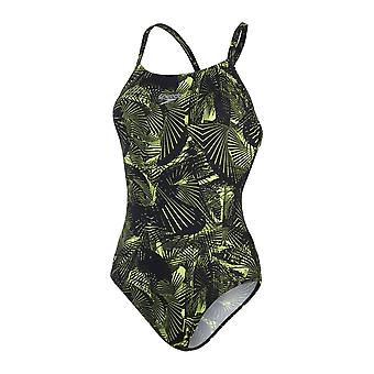 CHECK THE PROVIDED SIZE CHART (in image section above). Sizing is specific to this item and will not correspond with your usual clothing size. Power through your training in style and comfort wearing this standout Fixed Crossback swimsuit,featuring a bright lime-coloured reverberating graphic print. New for 2022, with thin straps designed to allow unrestricted shoulder movement during every reach and pull, and a pretty teardrop shaped back opening that provides increased side and lower back coverage over most of our other thin strap suits, the design is ideal for sets and drills. The suit is also fully front lined for comfort and modesty. Made to withstand daily swim sessions, our quick-drying and 100% chlorine resistant Endurance+ fabric helps colours stay bright for longer too. Key Features Fixed Crossback - Thinstrap style allowing unrestricted shoulder movement and flexibility Modest side & lower back coverage Medium leg height Fully front lined - For comfort and modesty 100% Chlorine resistance - For long lasting performance, & colours that stay brighter for longer Quick dry - Dries faster after swimming ]]>