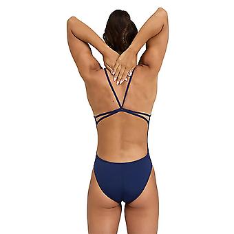 Arena Lace Back Solid Swimsuit - Navy Blue/White - Womens