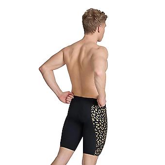 ALWAYS CHECK THE SIZE CHART (IN IMAGE SECTION ABOVE). SIZES PROVIDED ARE UK SIZES, BE SURE TO MEASURE AND CHECK THE SIZE CHART BEFORE ORDERING. Based on the BLACK + GOLD 50th Anniversary Special Edition Collection, Arena are now offering an Elite Signature Swimsuit Collection where each jammer has a different totem animal representing the spirit of each athlete. The limited edition Signature Jaguar Swim Jammers are designed with the personal emblem of Brazilian athlete Bruno Fratus. Jaguars are big, beautiful and excellent swimmers as well as being native to Brazil. Speckled with gold jaguar spots, this bold training swimsuit measures 45 cm long and streamlines the body from the waist to the knees. Made with Arena´s Maxlife Eco fabric, which has high resistance to chlorine with long-lasting performance. This advanced swimwear fabric keeps it shape longer than other materials and fits like a second skin. Hydrodynamic in the water, quick to dry for post-swim comfort and integrated UV protection for safe swimming under the sun. Arena Maxlife Eco fabric, features more than 50% recycled polyester from plastic bottles. Front lining and an inner drawstring for a secure fit. Key Features: 100% Chlorine resistance Limited Edition Bruno Fratus Jaguar Print Leg Length: 45 cm Front lining Quick Drying UV Protection Made with at least 50% recycled polyester from plastic bottles Fabric Composition: 100% Polyester