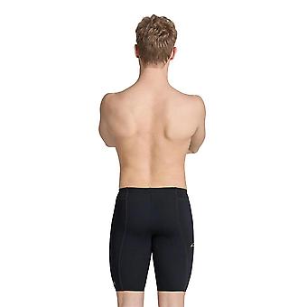 ALWAYS CHECK THE SIZE CHART (IN IMAGE SECTION ABOVE). SIZES PROVIDED ARE UK SIZES, BE SURE TO MEASURE AND CHECK THE SIZE CHART BEFORE ORDERING. Based on the BLACK + GOLD 50th Anniversary Special Edition Collection, Arena are now offering an Elite Signature Swimsuit Collection where each jammer has a different totem animal representing the spirit of each athlete. Competition beware Train in the new Arena Signature White Shark Swim Jammers inspired by Australian swimmer Kyle Chalmers. Growing up where the mighty ocean predator thrives, Chalmers has great respect for this formidable creature. Arena have designed these training jammers with a gold graphic of the athlete´s totem animal. This bold training swimsuit measures 45 cm long and streamlines the body from the waist to the knees. Made with Arena´s Maxlife Eco fabric, which has high resistance to chlorine with long-lasting performance. This advanced swimwear fabric keeps it shape longer than other materials and fits like a second skin. Hydrodynamic in the water, quick to dry for post-swim comfort and integrated UV protection for safe swimming under the sun. Arena Maxlife Eco fabric, features more than 50% recycled polyester from plastic bottles. Front lining and an inner drawstring for a secure fit. Key Features: 100% Chlorine resistance Limited Edition Kyle Chalmers White Shark Print Leg Length: 45 cm Front lining Quick Drying UV Protection Made with at least 50% recycled polyester from plastic bottles Fabric Composition: 100% Polyester