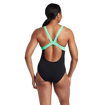 ALWAYS CHECK THE SIZE CHART (IN IMAGE SECTION ABOVE). SIZES PROVIDED ARE UK SIZES, BE SURE TO MEASURE AND CHECK THE SIZE CHART BEFORE ORDERING. The Zoggs Fragment Speedback swimsuit is exactly what you need to achieve your swimming goals. With a medium leg height, supportive shelf bra, and open back design, you have all the freedom of movement you need to take your swimming to the next level. Made from Zoggs sustainable Ecolast™+ fabric with recycled plastic bottles, this one piece swimsuit is 100% chlorine and UPF 50+ resistant . Ecolast+™ is a sustainable eco-fabric made with a high quality fibre produced from 100% recycled post consumer plastic bottles. 2 plastic bottles go into every Ecolast+ swimsuit and 13 x 500ml bottles in every metre of swimwear fabric The Ecolast+™ fabric provides optimal stretch and shape retention and has 4 times greater fabric compression than traditional swimwear fabrics. Zoggs Swimwear Support Levels - 4 levels of support so you can choose the swimsuit that you feel most confident in, this suit has Level 2 - Low Support Level 100% chlorine resistant Shelf bra for extra support Front Lined Supportive shoulder straps Medium Leg design Zoggs Swimwear Support Level 2 - Low Support Level Made from recycled post consumer plastic bottles. Quick drying fabric with UPF50+ sun protection. 4 times greater fabric compression than traditional generic swimwear fabrics Exceptional shape retention and machine washable Ecolast+™ fabric: 51% RePETable® Recycled Polyester and 49% Polyester P.B.T