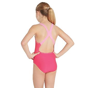ALWAYS CHECK THE SIZE CHART (IN IMAGE SECTION ABOVE). SIZES PROVIDED ARE UK SIZES, BE SURE TO MEASURE AND CHECK THE SIZE CHART BEFORE ORDERING. The girl´s Zoggs Heavenly Flyback swimsuit in pink is a great choice for young swimmers to take to the pool. The Flyback features wide, comfortable shoulder straps and an open back design, that provides great freedom of movement. This swimming costume is made with Zoggs Ecolastâ„¢ eco-friendly fabric, made from recycled waste recovered from the ocean, you can feel good, look good and do good with this eco-friendly fabric. Ecolastâ„¢ fabric is up to 15 times more resistant to the effects of chlorine when compared to traditional Lycra fabric. Ecolastâ„¢ retains its colour and shape brilliantly, so your confidence will be boosted during your time at the pool. The fabric´s 4 way stretch properties, give your swimsuit superior shape retention and fit. Features: Eco-friendly fabric made from nylon waste recovered from the ocean. Up to 15 times more chlorine resistant than standard Lycra swimsuits. Fade Protection UPF 50 Soft Comfortable fabric Quick Drying Medium Leg Front Lined Ecolast Material: 82% Recycled Polyester and 18% Elastane