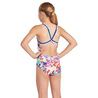 ALWAYS CHECK THE SIZE CHART (IN IMAGE SECTION ABOVE). SIZES PROVIDED ARE UK SIZES, BE SURE TO MEASURE AND CHECK THE SIZE CHART BEFORE ORDERING. The junior girls Zoggs Jigsaw Starback is the missing puzzle piece to your swimming wardrobe. With a bright and colourful print combined with adjustable thin straps, this Zoggs one piece is perfect for any beach or pool day. Featuring a front lining for added comfort and support, this swimsuit is designed to help your daughter feel confident and comfortable in the water. Made from Zoggs eco friendly Ecolast™ fabric which provides chlorine resistance for 250 pool hours and also gives UPF50+ sun protection. Zoggs Ecolast™ fabric is not only environmentally friendly and sustainable, but it has also proven to last up to 15 times longer than generic swimwear fabrics. Ecolast™ is a sustainable eco-fabric made with a high quality fibre produced from 100% recycled post consumer plastic bottles. 7 x 500ml plastic bottles go into every Ecolast swimsuit and 18 x 500ml bottles in every metre of swimwear fabric The Ecolast™ fabric provides optimal 4-way stretch for superior shape retention properties. Key Features: Made with recycled plastic bottles Adjustable thin shoulder straps Highly chlorine resistant lasts for 250 pool hours plus. Front Lining for modesty & support Superior shape retention Quick drying and UPF50+ sun protection Medium leg height Ecolast™ fabric: 82% Recycled Polyester and 18% PBT