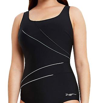 ALWAYS CHECK THE SIZE CHART (IN IMAGE SECTION ABOVE). SIZES PROVIDED ARE UK SIZES, BE SURE TO MEASURE AND CHECK THE SIZE CHART BEFORE ORDERING. The Zoggs Macmasters Scoopback swimsuit is an everyday swimsuit designed to flatter, with cross body asymmetric lines and support you where it matters. Featuring mesh tummy control, full foam cups, low leg height and supportive wide straps, this Zoggs swimsuit gives coverage and comfort. Designed with Zoggs latest eco-friendly Ecolast+™ fabric made from recycled post consumer plastic bottles. Ecolast+™ is a sustainable eco-fabric made with a high quality fibre produced from 100% recycled post consumer plastic bottles. 2 plastic bottles go into every Ecolast+ swimsuit and 6 bottles in every metre of swimwear fabric The Ecolast+™ fabric provides optimal stretch & shape retention and has 4 X greater fabric compression that traditional swimwear fabrics. Not only is Ecolast+™ great for the environment, it’s 100% chlorine proof and has UPF50+ sun protection The Zoggs Macmasters shoulder straps provide great support without restricting your swimming strokes. Features: Medium width supportive strapsShelf bra with fixed foam cups for support and shapingFront lined Tummy control panelHigh scoopbackMedium leg heightMade with Ecolast+™ fabric made from recycled post consumer plastic bottles100% chlorine proof, quick drying fabric with UPF50+ sun protection4 x greater fabric compression than generic swimwear fabrics51% Recycled Polyester 49% Polyester P.B.T