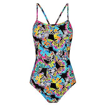 ALWAYS CHECK THE SIZE CHART (IN IMAGE SECTION ABOVE). SIZES PROVIDED ARE UK SIZES, BE SURE TO MEASURE AND CHECK THE SIZE CHART BEFORE ORDERING. The colourful butterfly inspired print AMANZI Chroma Proback One Piece is a all purpose training swimsuit engineered to fit the needs of both competitive and active swimmers. The thin shoulder straps are designed to reduce weight on the neck and shoulder muscles and allow for maximum freedom and ease of movementwhilst swimming. Made with AMANZI Armor Ecoâ„¢ a high-performance swimwear fabric that exemplifies sustainability, durability, and comfort. This eco-friendly fabric is designed and milled in Italy, combining the latest advancements in chlorine resistance with reduced environmental impact. The wide open back follows the natural contour of the body, providing an ergonomic fit and superior comfort. The medium cut leg is suitable for all figures. Features: Chlorine Resistant With a UPF 50+ rating, AMANZI Armor Ecoâ„¢ provides outstanding protection against the sun´s harmful UV rays. Even after extended use, AMANZI Armor Ecoâ„¢ retains its shape, ensuring consistent performance over time. The fabric´s luxurious feel is gentle on the skin, providing ultimate comfort Quick drying Front Lined Made from 51% recycled polyester and 49% polyester from PBT